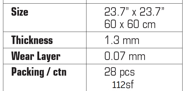 Self Stick Vinyl PVC Tile Sq_60cm x 60cm x 1.3mm